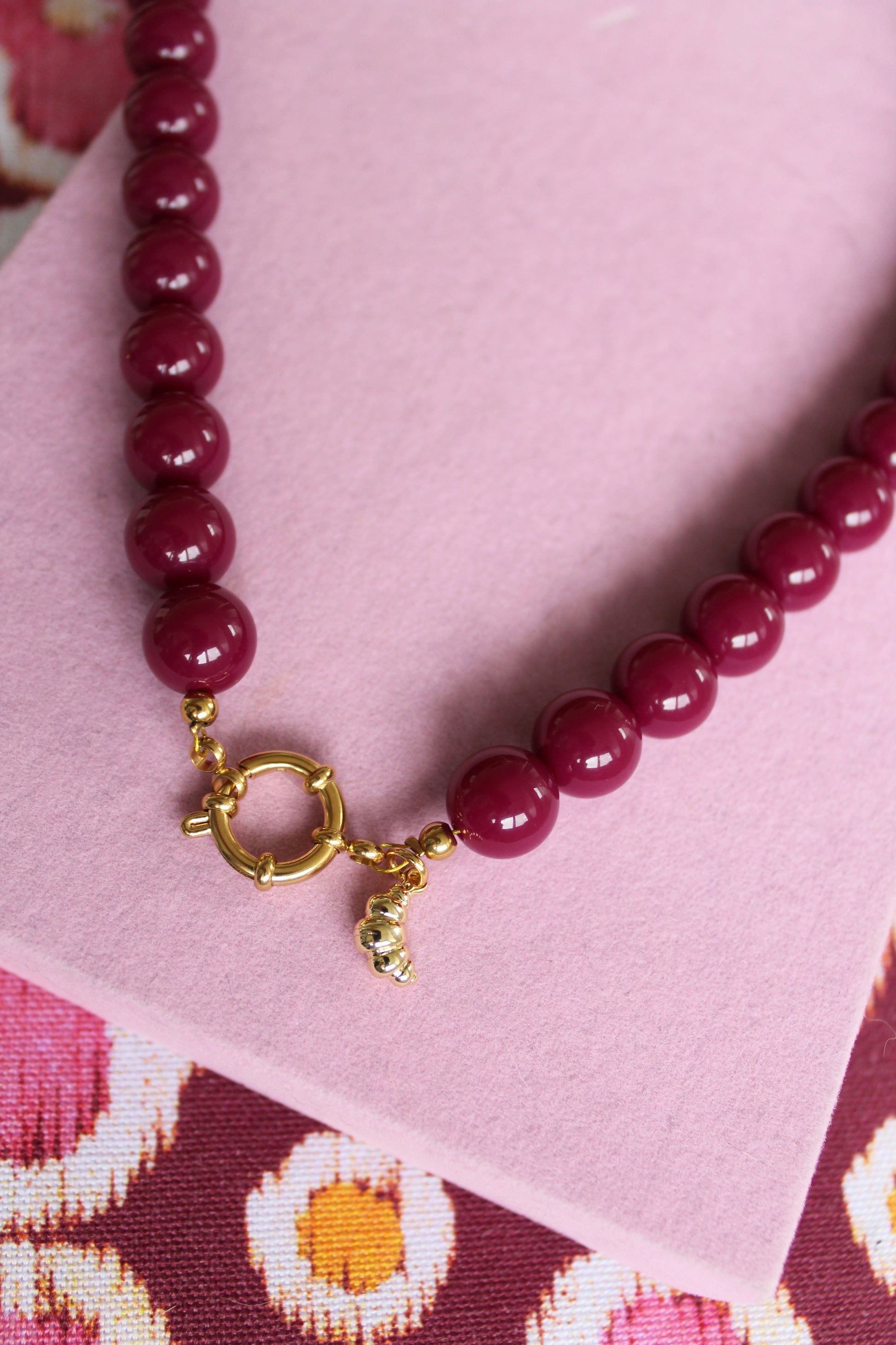 De trend voor deze herfst: burgundy! Afgewerkt met een prachtige gouden bedel. Keuze uit een croissant, een hartje of een bruine smiley. 🤎🥐✨