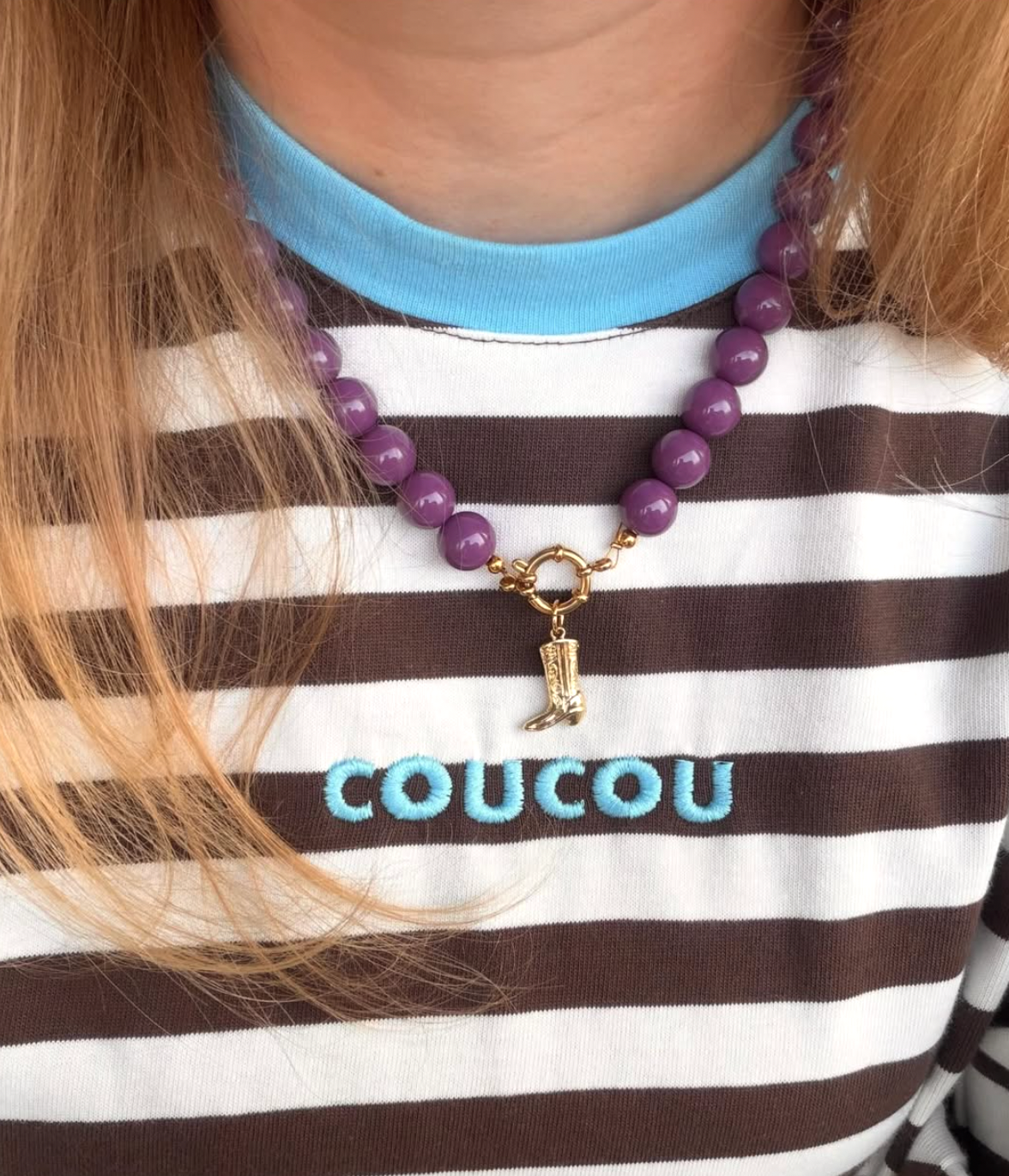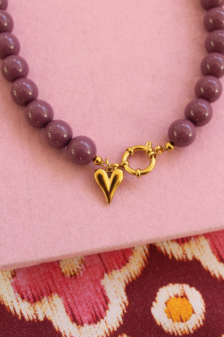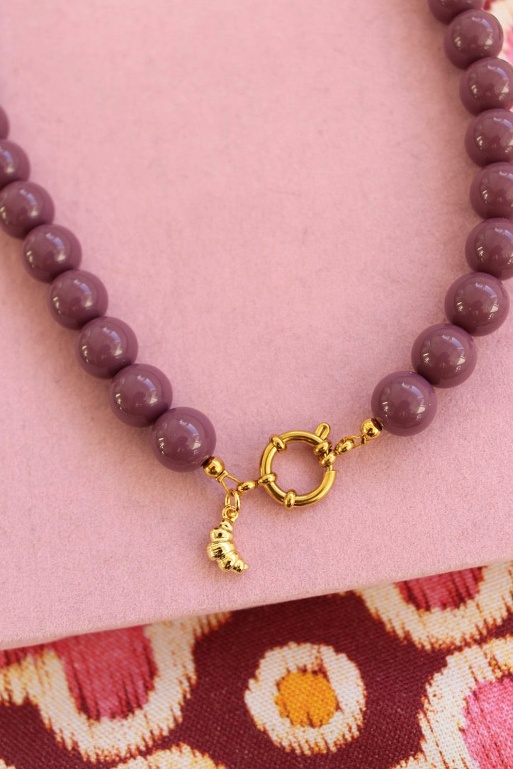 Breng een speelse en kleurrijke touch aan je look met de ketting in lila/paars! Perfect voor wie houdt van zachte, dromerige tinten met een vrolijk accent.