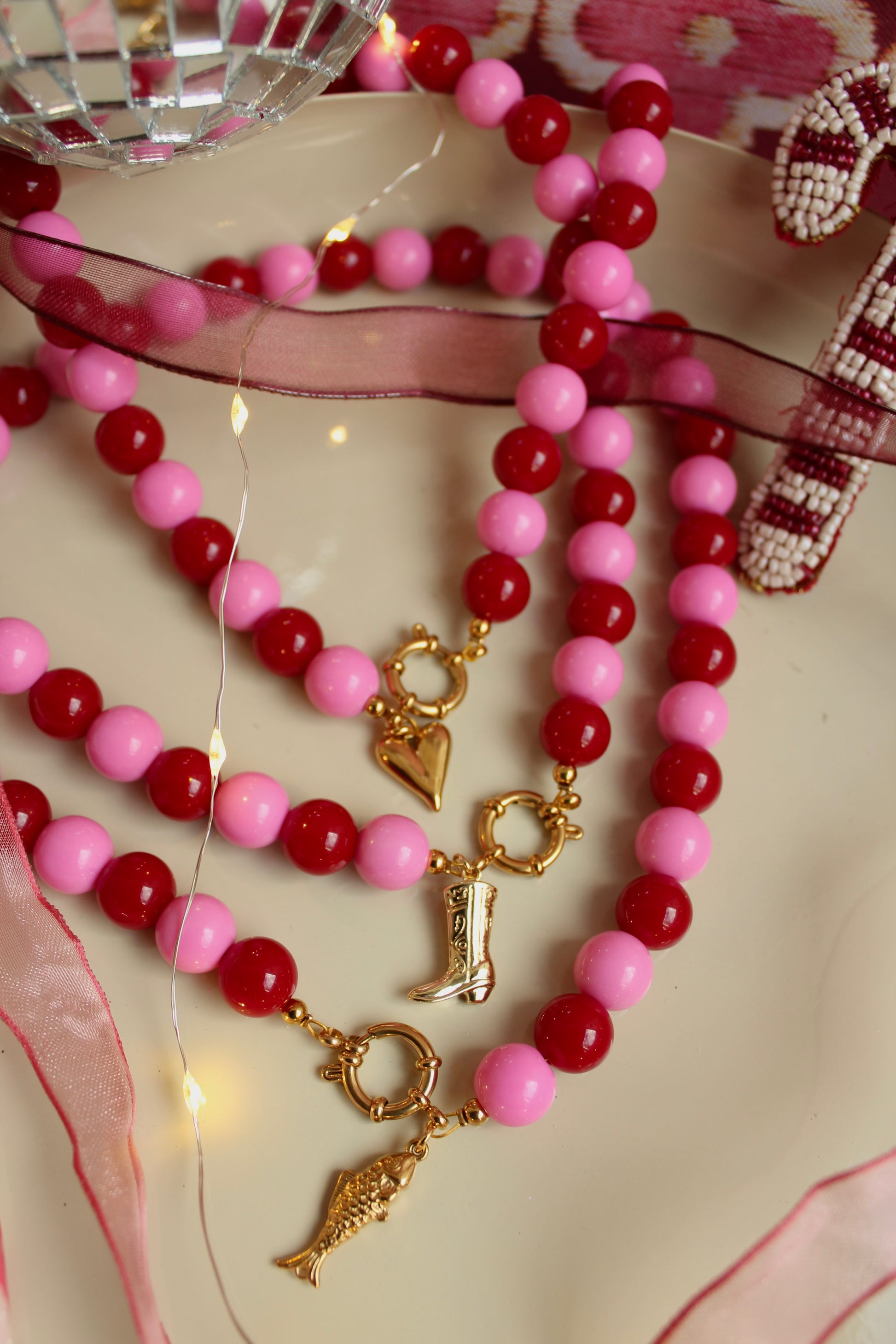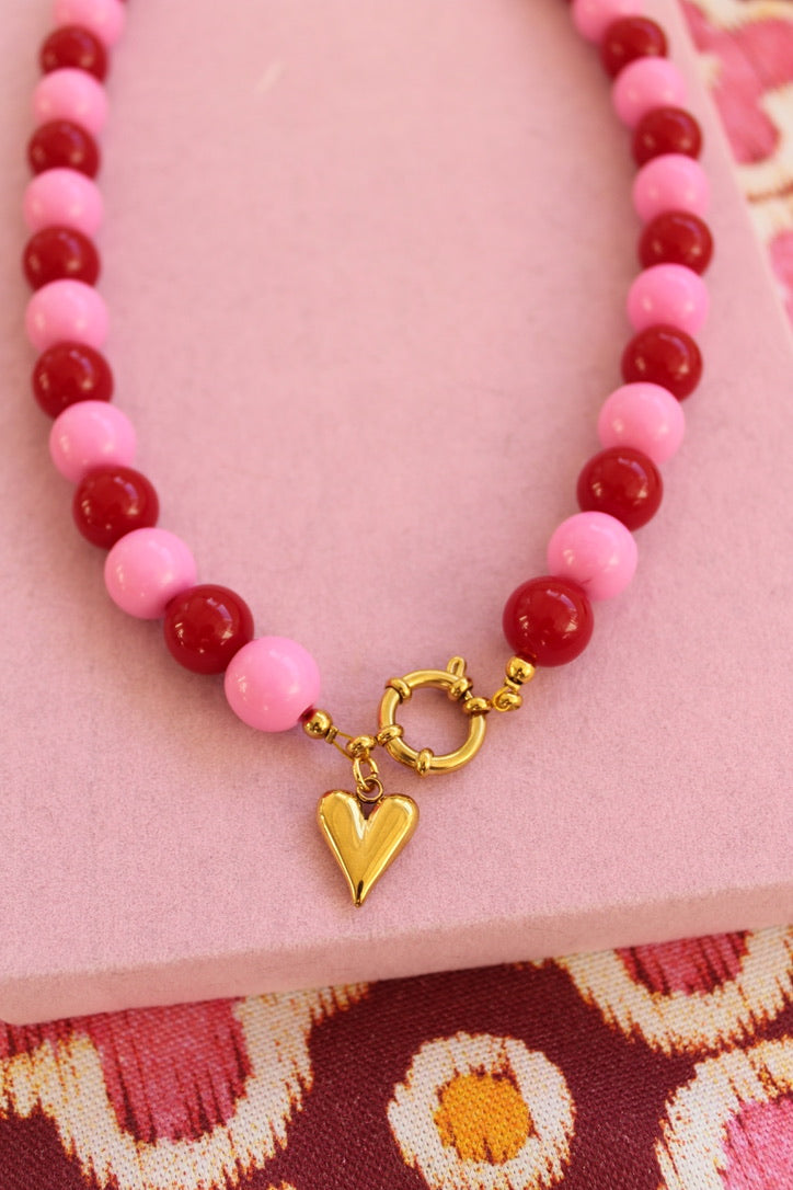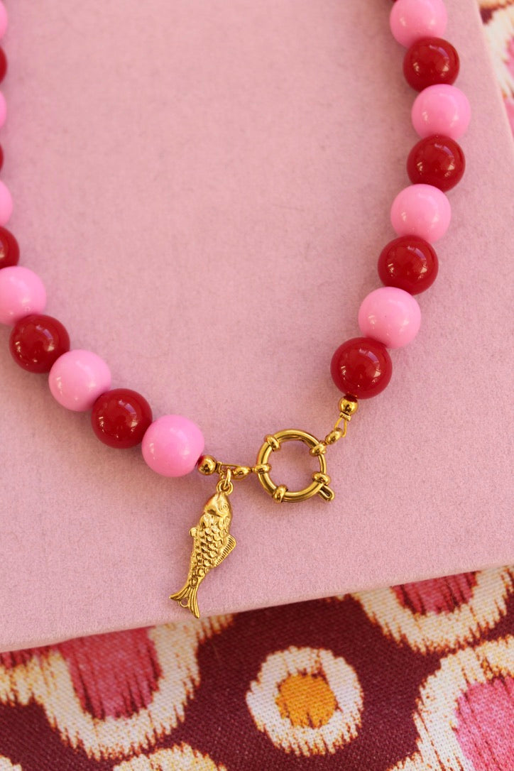 Breng de magie van de feestdagen tot leven met de Candy Christmas ketting! Deze vrolijke eyecatcher is gemaakt van acryl kralen in afwisselende roze en rode tinten, een perfecte mix van zoet en stijlvol. De speelse kleurencombinatie doet denken aan zuurstokjes, kerstlichtjes en knusse wintermomenten.