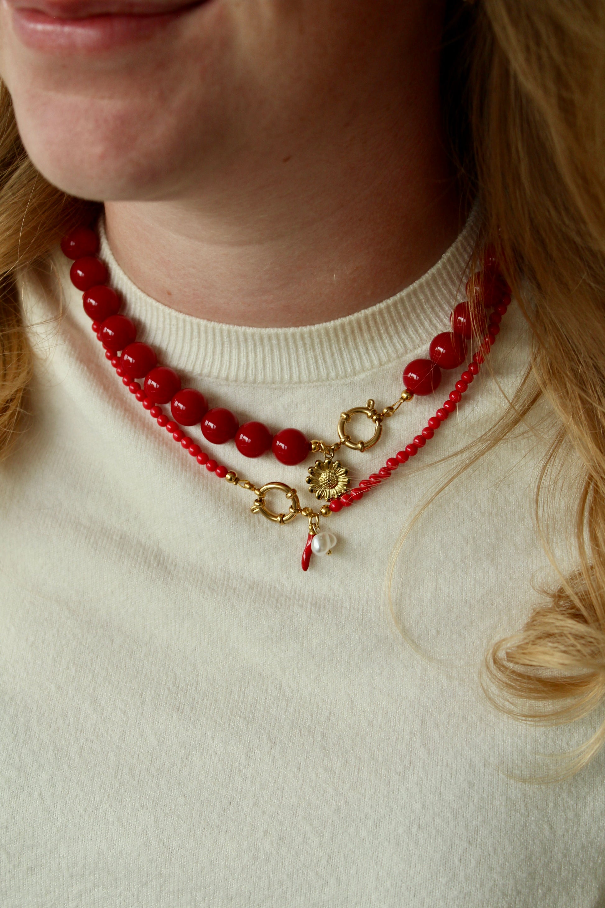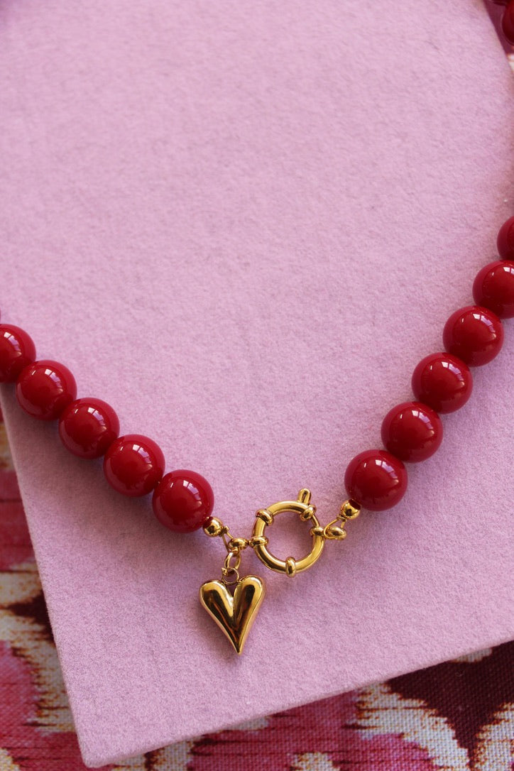 Rode 12 mm kralen ketting. Afgewerkt met een prachtige hart bedel. 💛