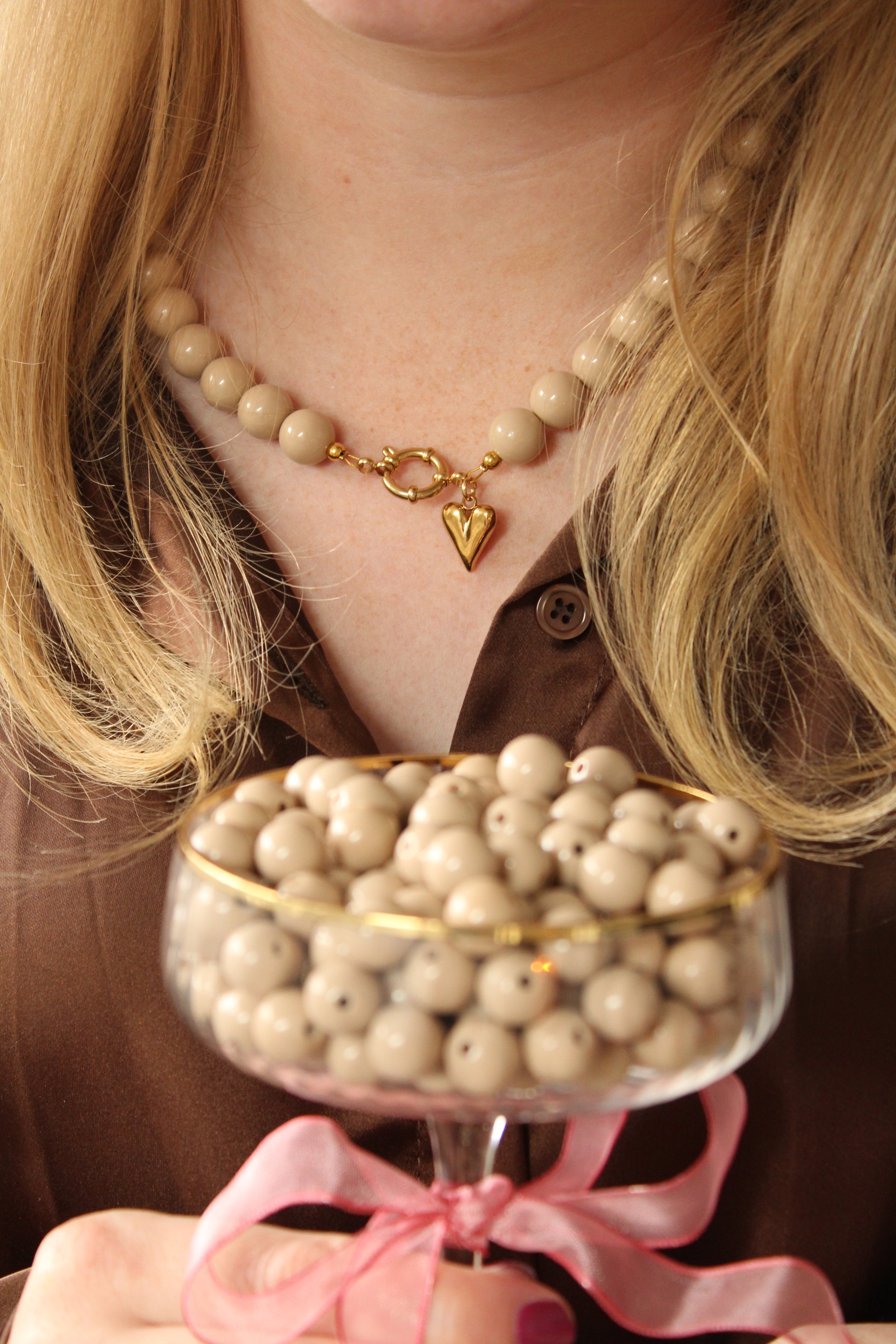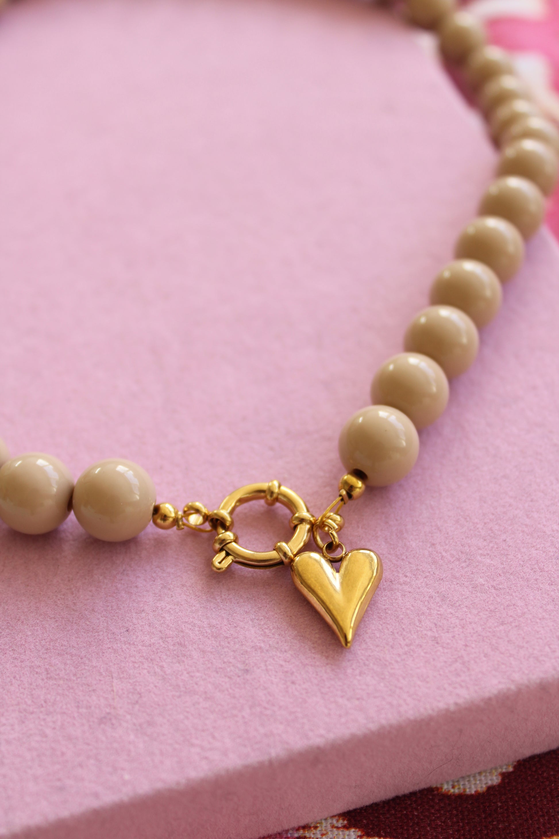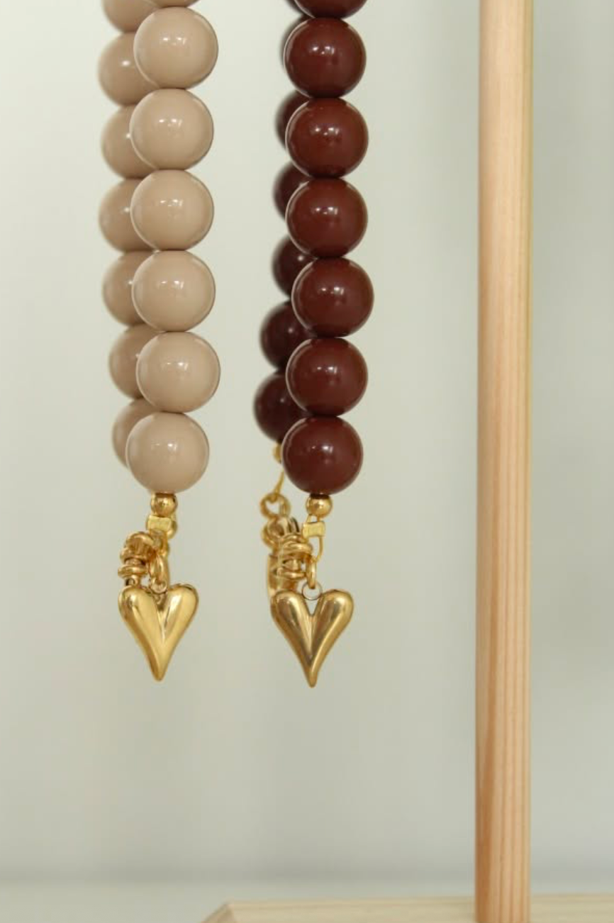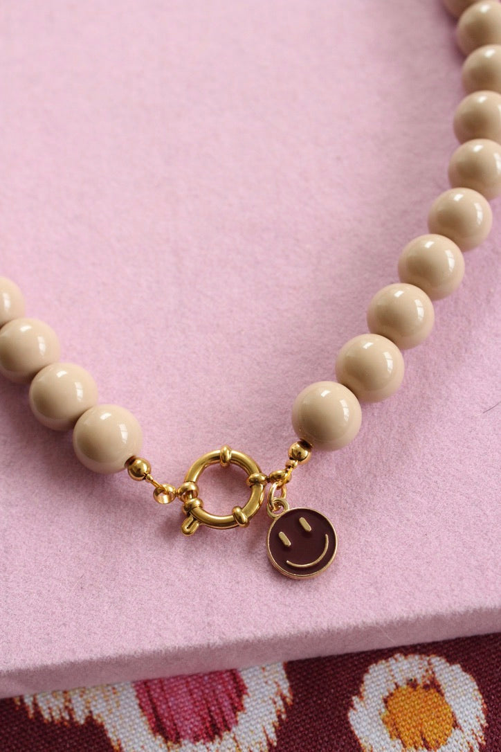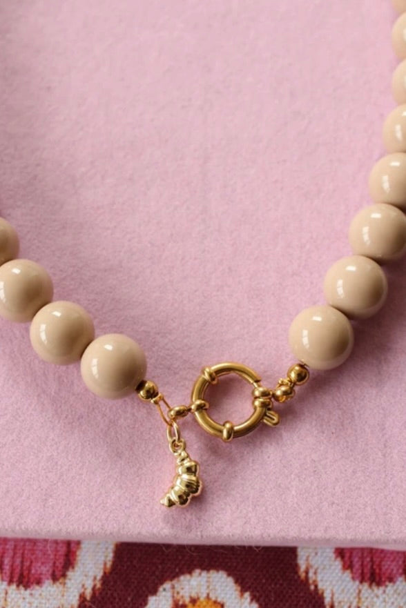 Beige kralenketting perfect voor elke look! Afgewerkt met een prachtige gouden bedel. Keuze uit een croissant, een hartje of een bruine smiley. 🤎🥐✨